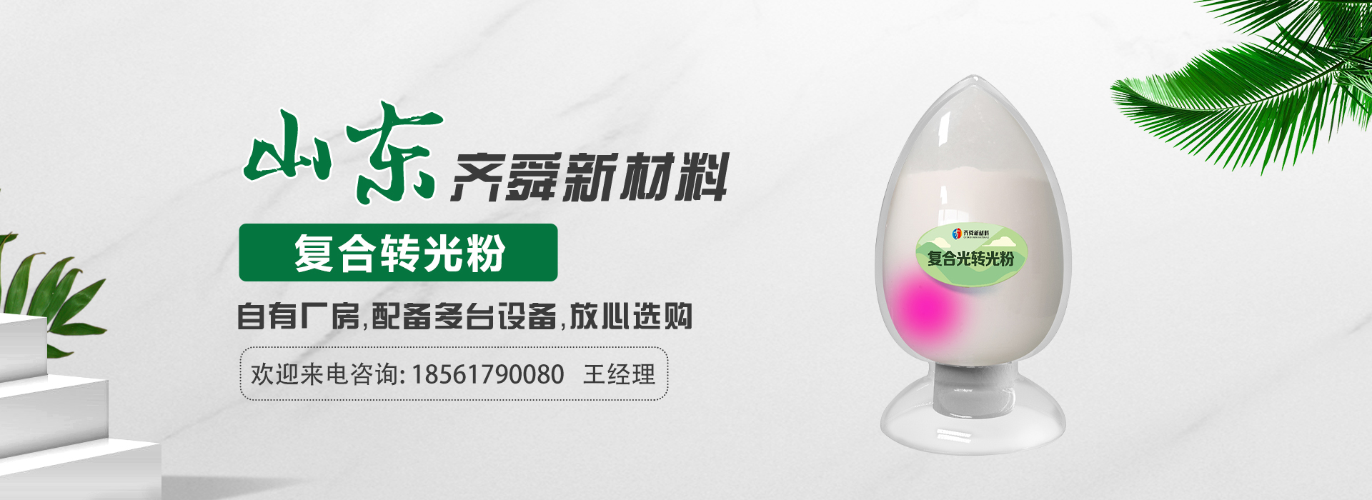 我公司前身為2011年成立的淄博舜明熒光科技有限公司。隨著公司的發(fā)展,廠址從淄博搬遷到青島,2020年5月公司重新注冊(cè)為山東齊舜新材料有限公司。公司注冊(cè)資本2000萬(wàn)元,主要從事新材料研究和開發(fā)。目前主要產(chǎn)品包括:農(nóng)膜用轉(zhuǎn)光粉、轉(zhuǎn)光母粒以及轉(zhuǎn)光農(nóng)膜;農(nóng)膜用長(zhǎng)效防霧流滴涂覆液;復(fù)合肥添加劑及葉面肥(稀土微肥);防偽粉;LED封裝熒光粉;夜光粉;太陽(yáng)能光伏電池增效熒光粉;鋰電池正極材料等。